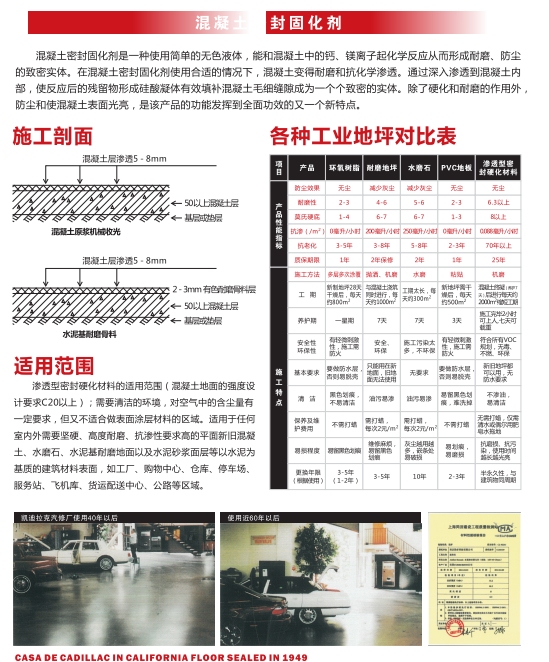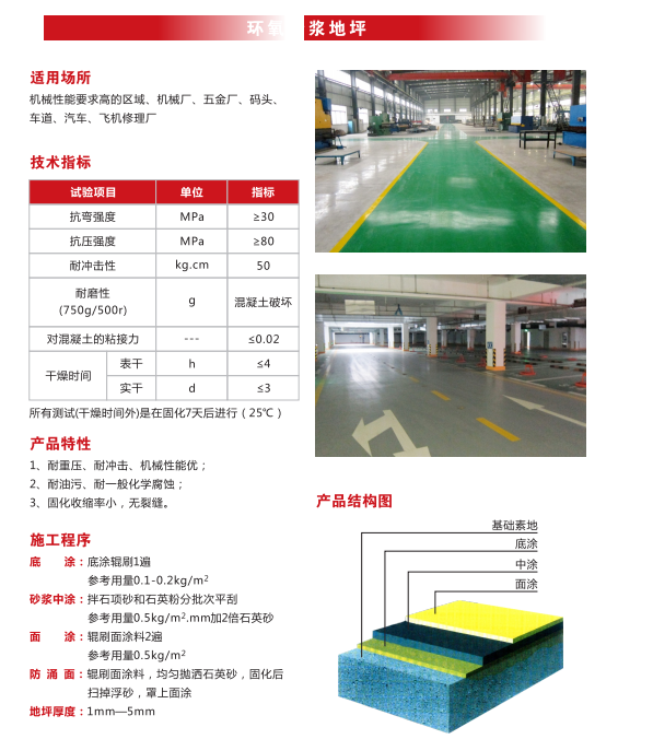 根據(jù)不同的使用功能需求、現(xiàn)場(chǎng)施工條件、地域差異等因素,公司主要涉及產(chǎn)品分為:混凝土密封固化劑系列、環(huán)氧樹脂地坪漆涂裝系列、PVC卷材系列、運(yùn)動(dòng)球場(chǎng)涂裝系列、停車場(chǎng)交通標(biāo)識(shí)系列、巖棉保溫防火復(fù)合板外保溫系列等。